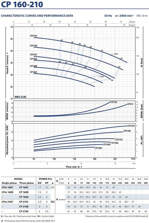 - • Manometric suction lift up to 7 m