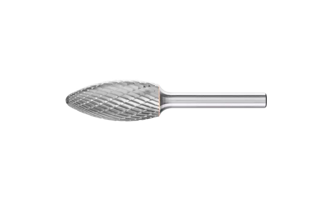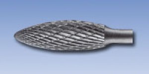 Flame-shaped burr according to ISO 7755/8 with cut conforming to DIN 8033.