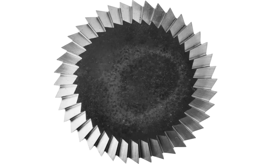 Rim-shaped burr, circumferential cut is 90° and symmetric, tapered tip. The rim shape is particularly well suited to producing and processing prism-shaped keyways.