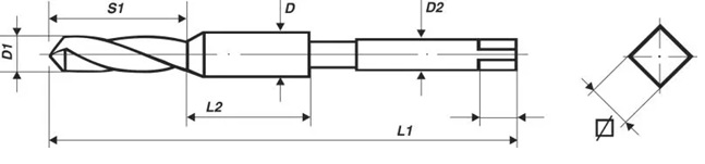 The tool incorporates a twist drill before the thread-tapping part. This tool can produce through threads up to a maximum threaded depth of 2 x D.